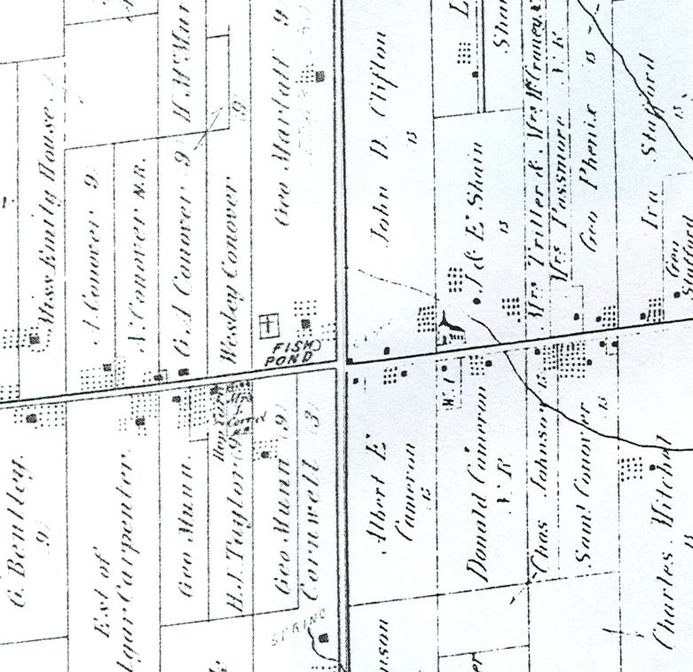 The store and post office were located on the northeast corner of the modern intersection while a school (which operated from about 1870 – 1922) was located on the south side of the intersection. The post office was only in operation from 1863 to 1874, prior to and afterwards the mail came to the Sheridan. The small Methodist congregation at Frogmore would gather at George Falconer’s home (once located at the corner of the Fifth Line and Dundas Street) to listen to services given by traveling Methodist Preachers.