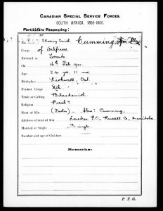 As a mark of their service, Imperial troops would receive the Queen’s South Africa Medal. Given to anyone who served in South Africa during the duration of the war, there were 26 clasps for the medal, denoting specific actions, locations or time frames in which they served. A total of 3,860 Queen’s South Africa Medals would be given to Canadian soldiers.